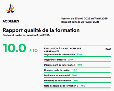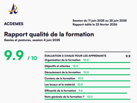 * GESTES ET POSTURES AMSAM : VALIDATIONS 100% (sur 100% de présentés).
